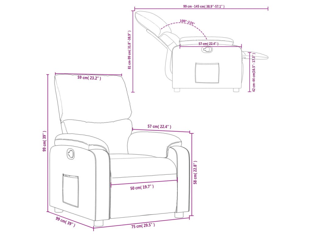 - Rozmery v polohe na ležanie: 75 x 145 x 81 cm (Š x H x V)