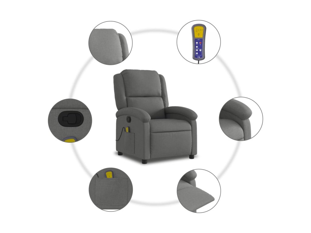 vidaXL Sklápacie masážne kancelárske kreslo tmavosivé látkové