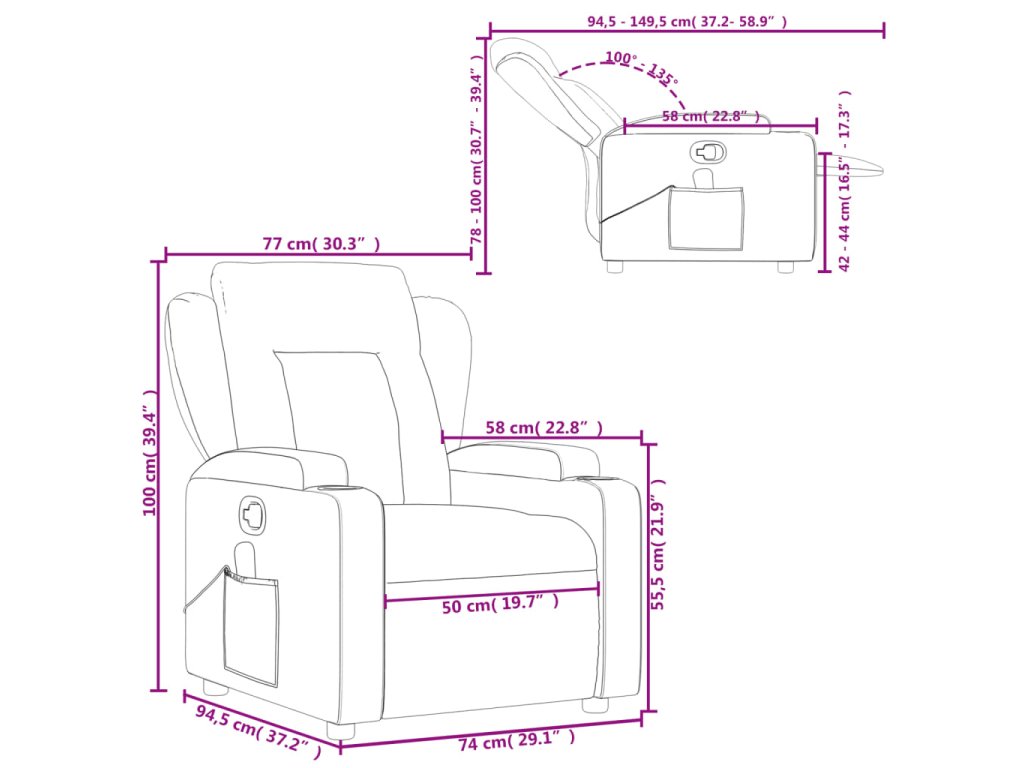 - Rozmery v polohe na ležanie: 77 x 149,5 x 78 cm (Š x H x V)
