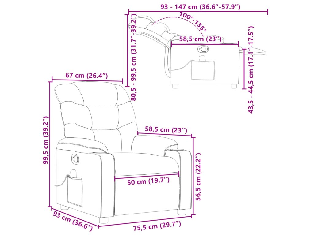 - Pohodlné držiaky na poháre a bočné vrecko: Toto kreslo má dva praktické držiaky na nápoje a bočné vrecko na diaľkový ovládač alebo na dôležité veci, ktoré budete mať po ruke.