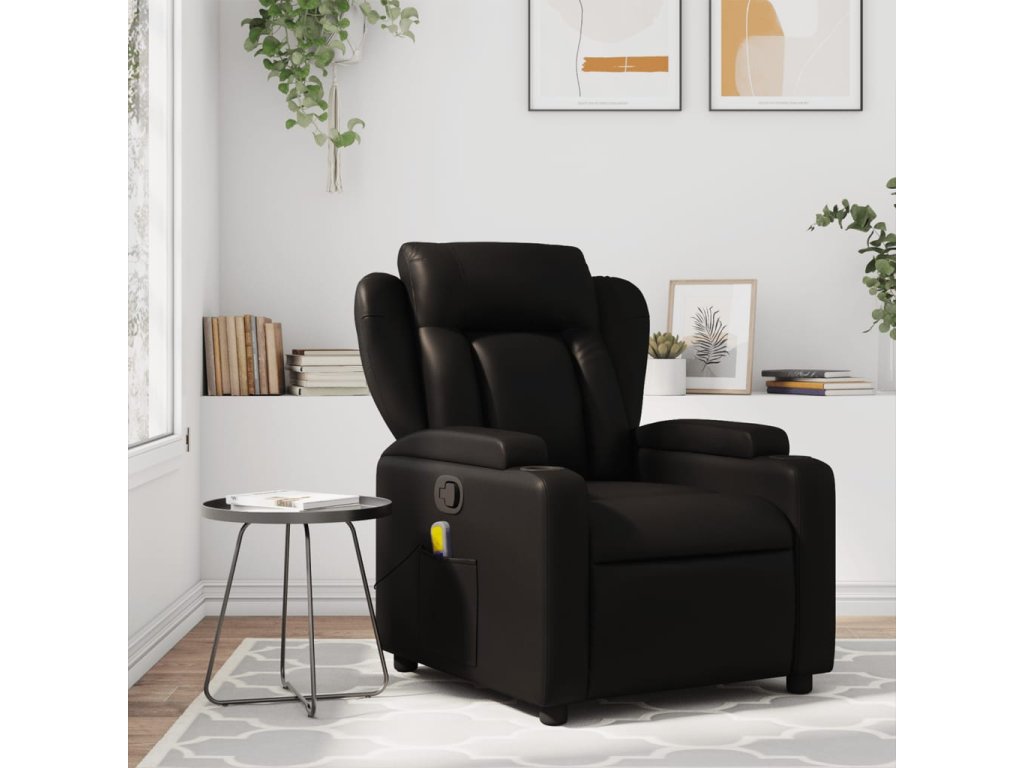 vidaXL Sklápacie masážne kreslo čierne lesklé umelá koža