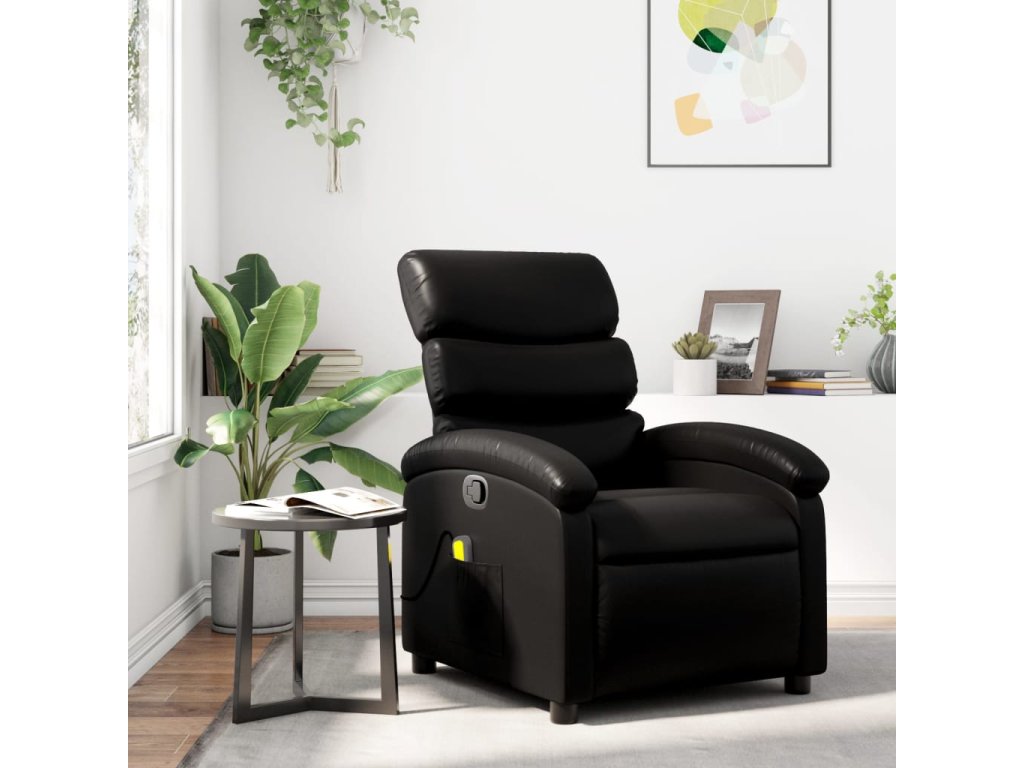 vidaXL Sklápacie masážne kreslo čierne lesklé umelá koža
