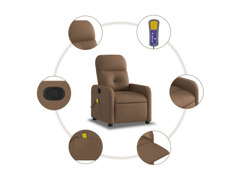 vidaXL Sklápacie masážne kreslo hnedé látka