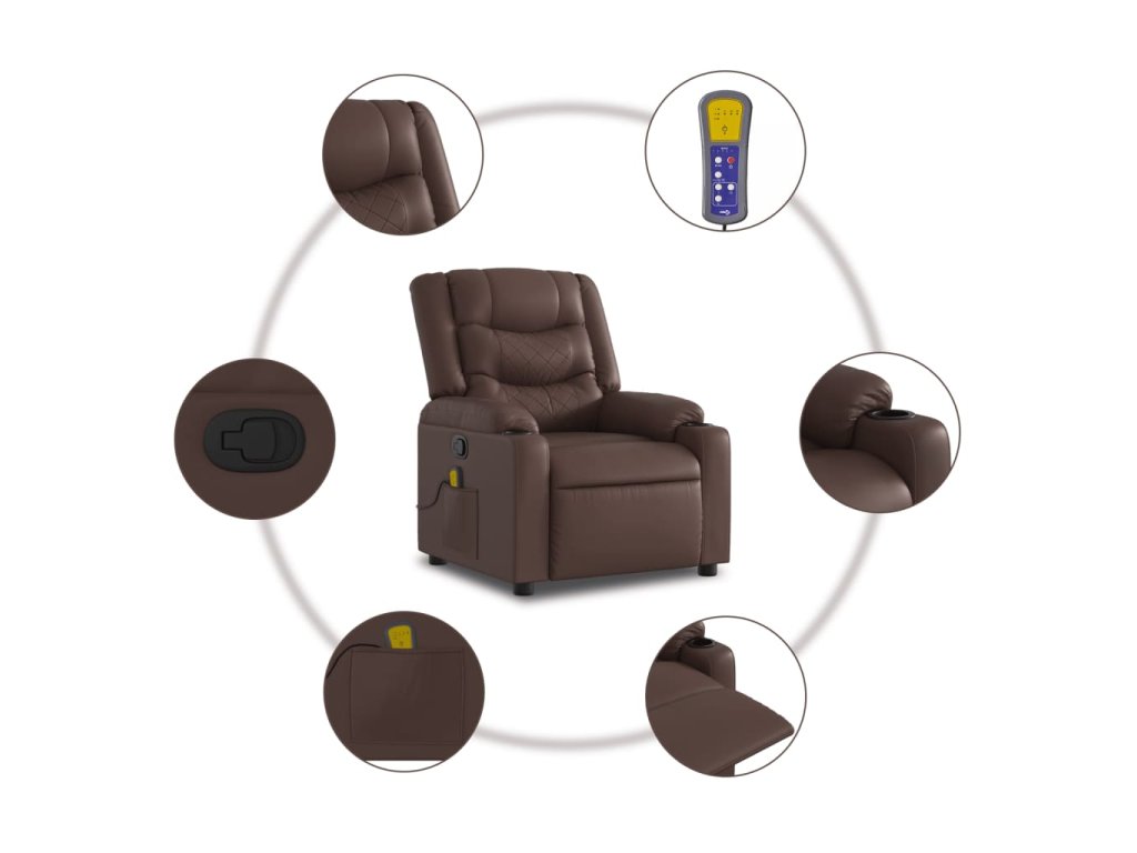 vidaXL Sklápacie masážne kreslo hnedé umelá koža