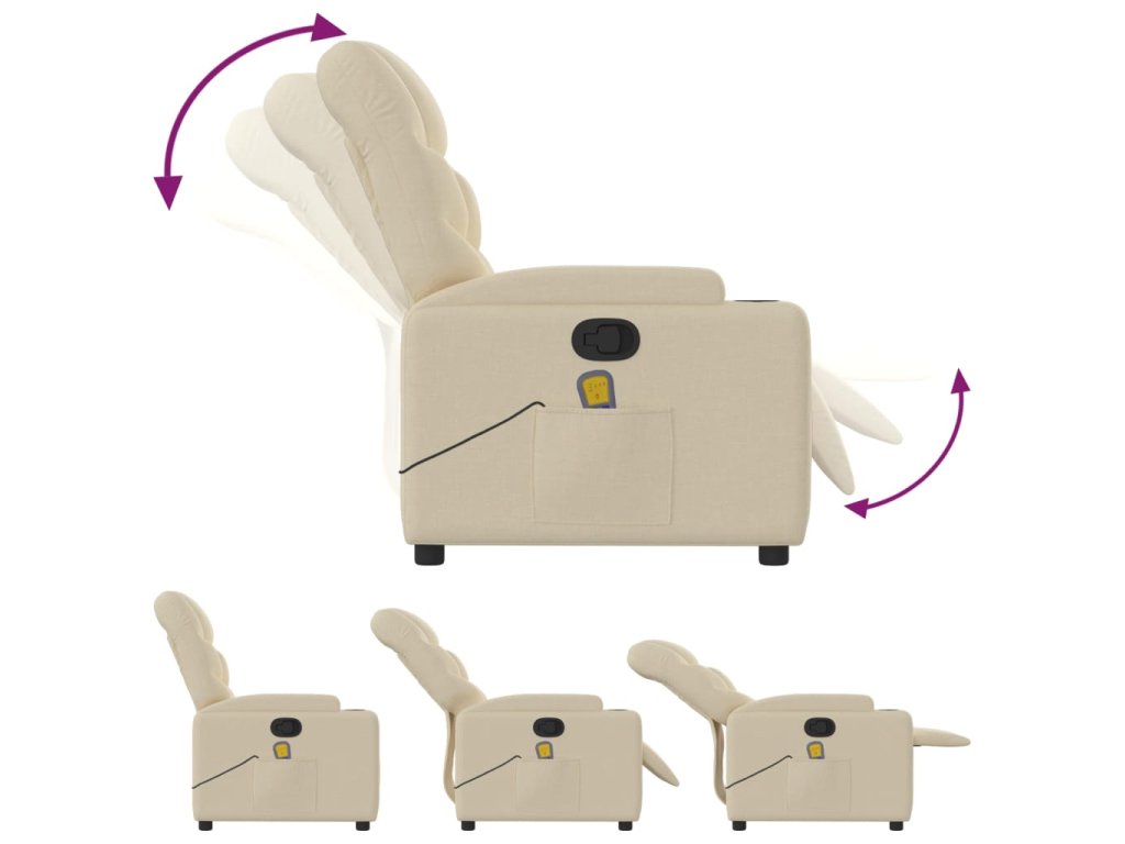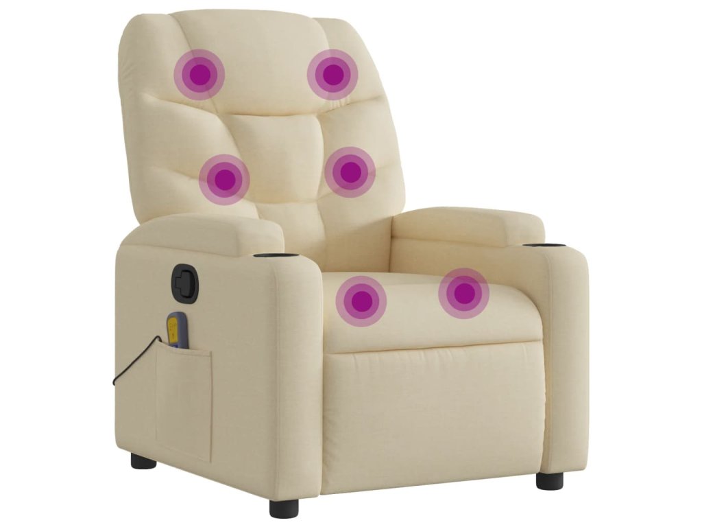 vidaXL Sklápacie masážne kreslo krémové látkové