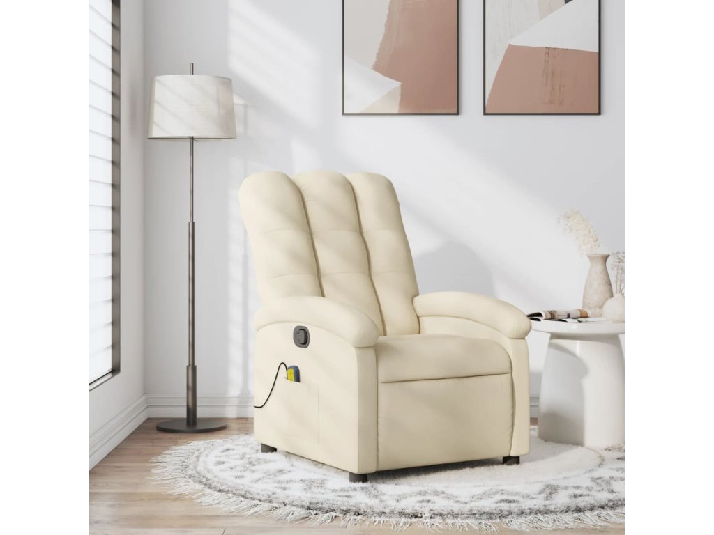 vidaXL Sklápacie masážne kreslo krémové látkové