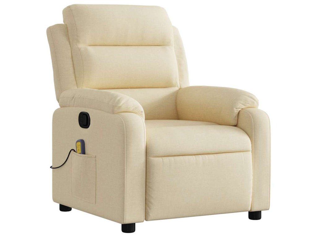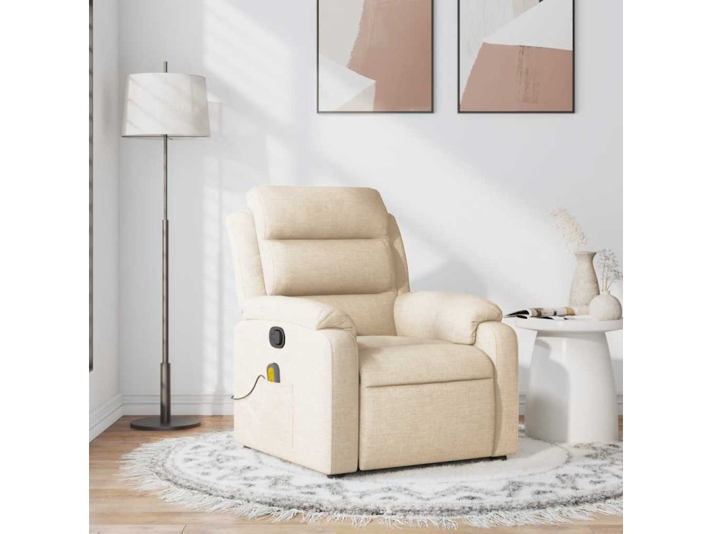 vidaXL Sklápacie masážne kreslo krémové látkové
