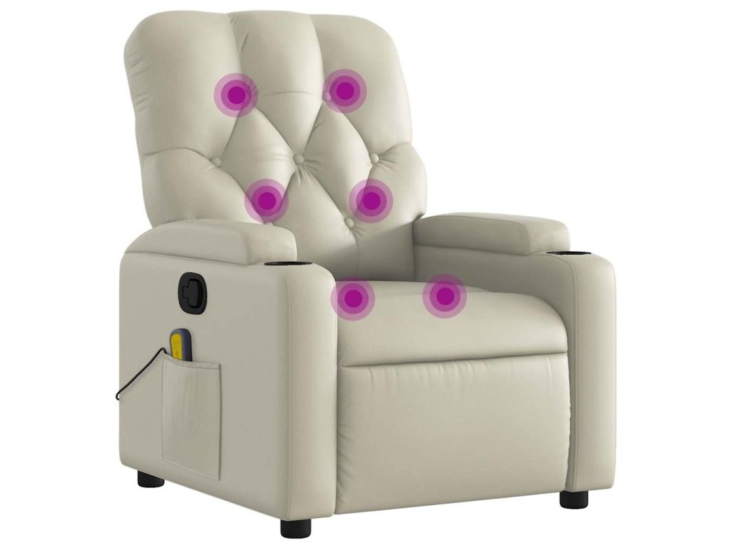 vidaXL Sklápacie masážne kreslo krémové umelá koža