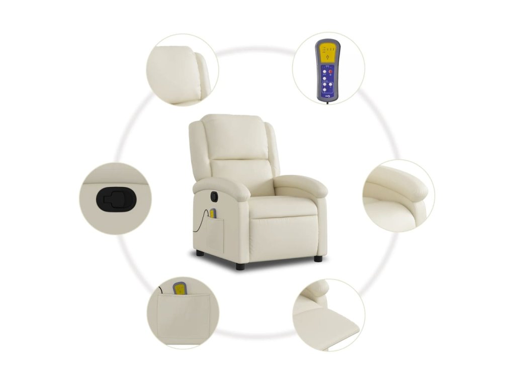 vidaXL Sklápacie masážne kreslo krémové umelá koža