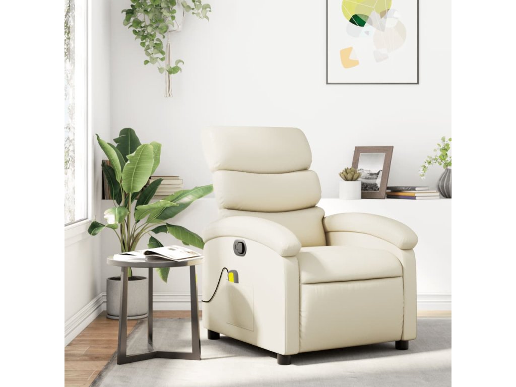 vidaXL Sklápacie masážne kreslo krémové umelá koža