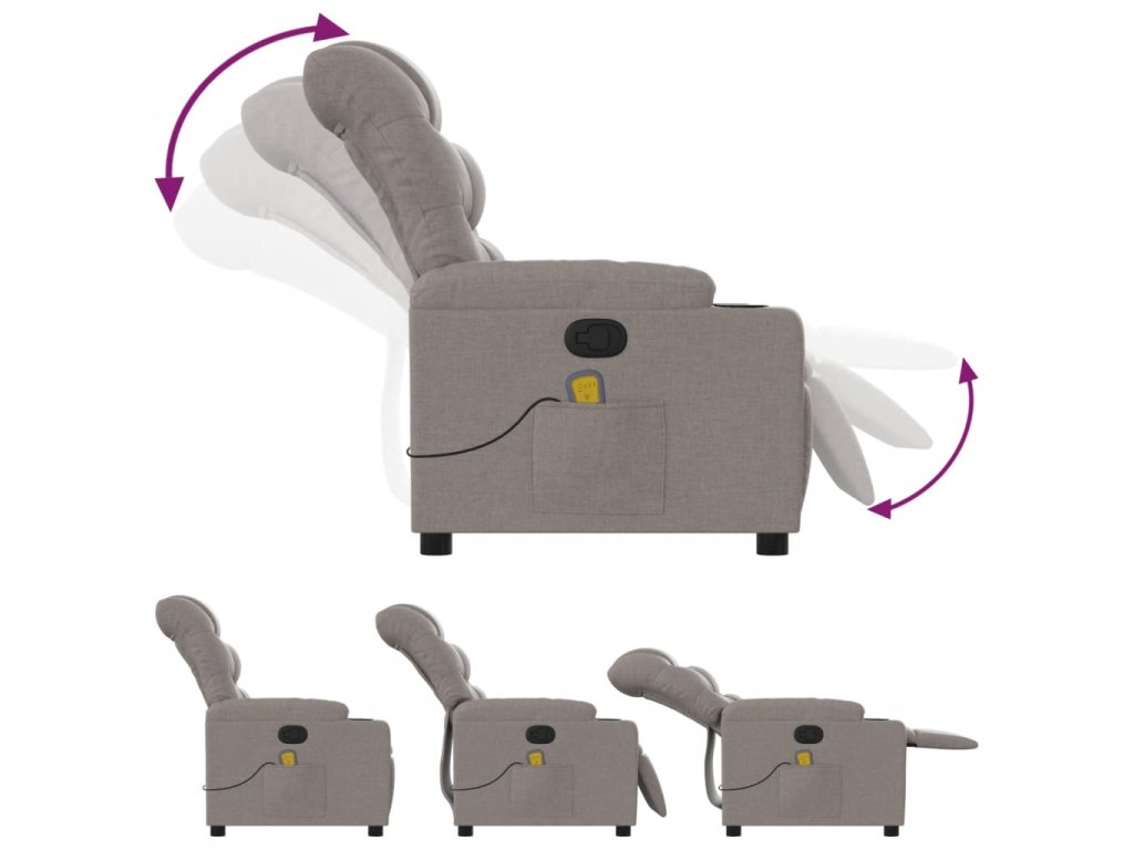 vidaXL Sklápacie masážne kreslo sivohnedé látka