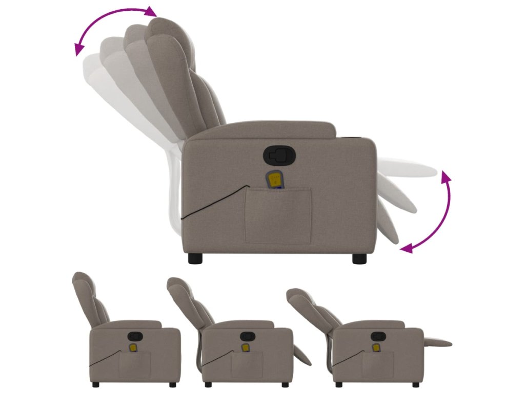 vidaXL Sklápacie masážne kreslo sivohnedé látka