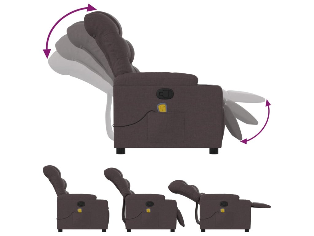 vidaXL Sklápacie masážne kreslo tmavohnedé látka