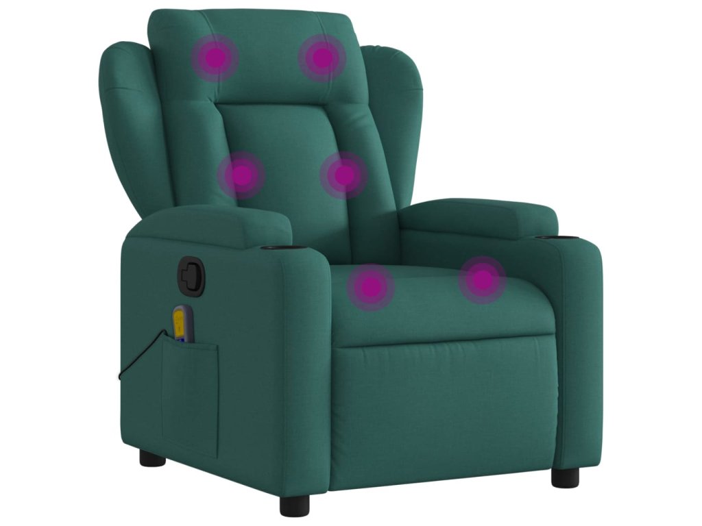 vidaXL Sklápacie masážne kreslo tmavozelené látka