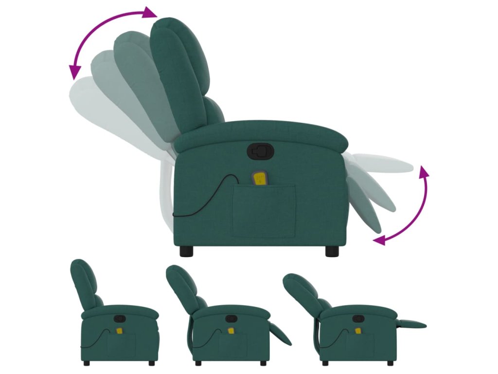 vidaXL Sklápacie masážne kreslo tmavozelené látka