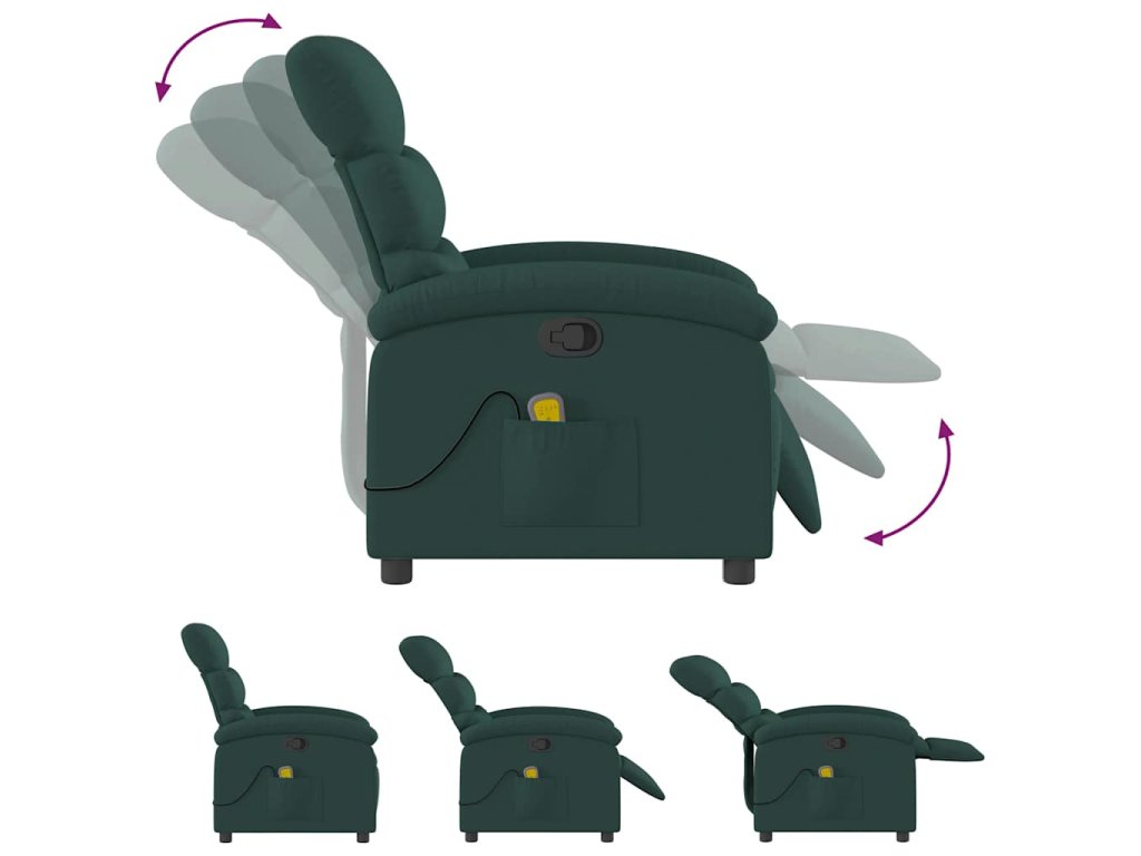 vidaXL Sklápacie masážne kreslo tmavozelené látka