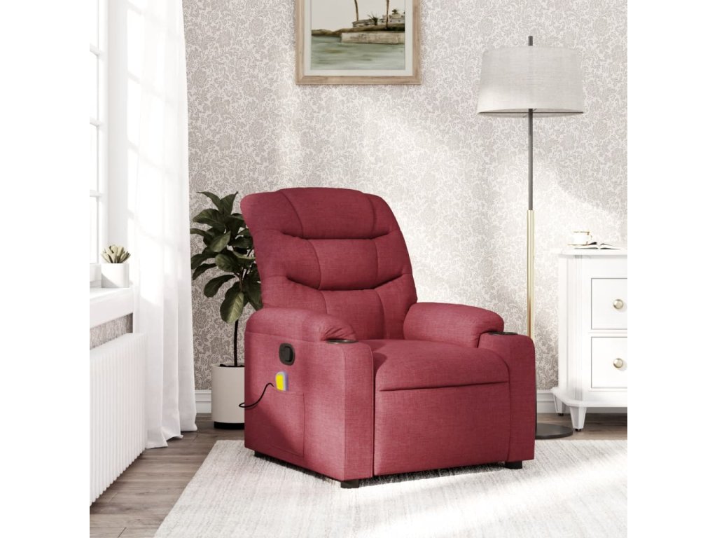 vidaXL Sklápacie masážne kreslo vínovo-červené látka