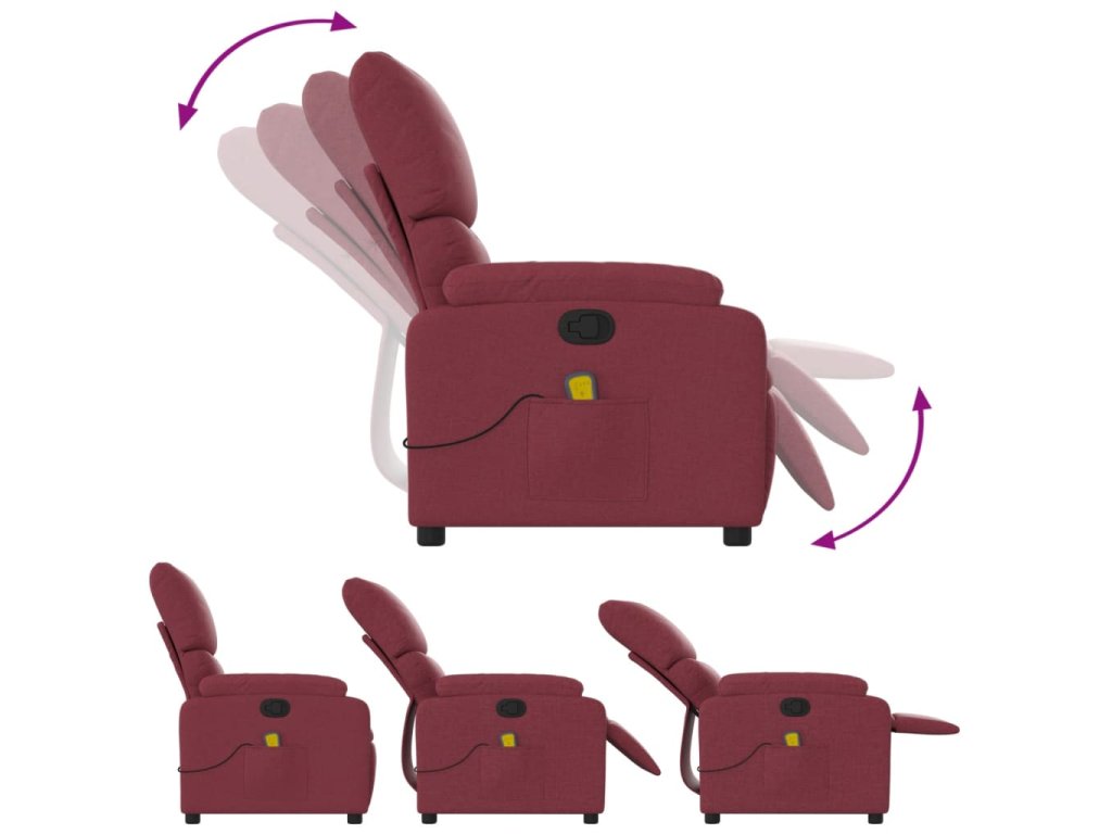 vidaXL Sklápacie masážne kreslo vínovo-červené látka