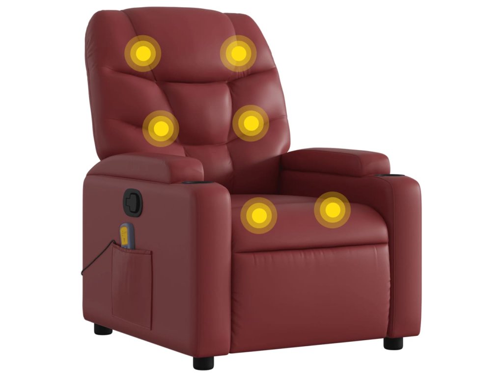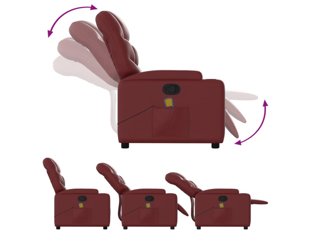 vidaXL Sklápacie masážne kreslo vínovo-červené umelá koža