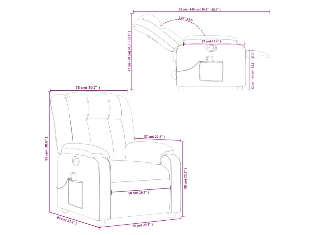 - Rozmery v polohe na ležanie: 78 x 149 x 77 cm (Š x H x V)