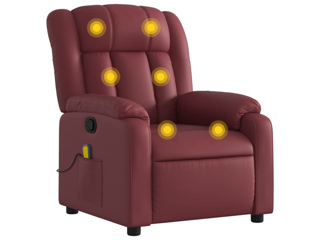 vidaXL Sklápacie masážne kreslo vínovo-červené umelá koža