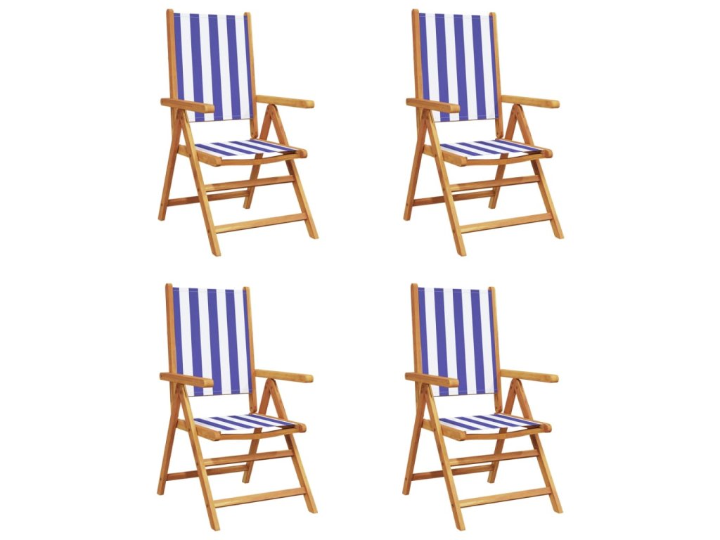 vidaXL Sklápacie záhr. stoličky 4ks modrá a biela látka+masívne drevo