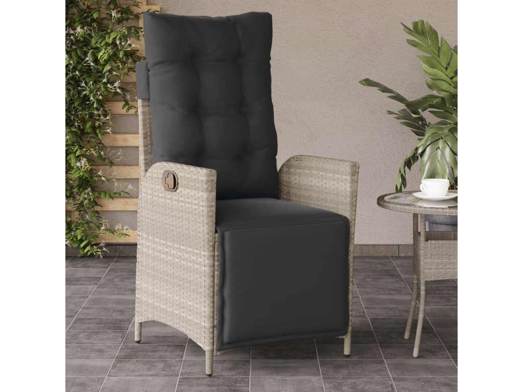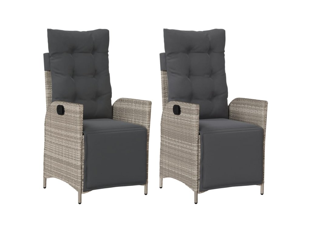 vidaXL Sklápacie záhradné kreslá 2 ks s podložkami bledosivé polyratan