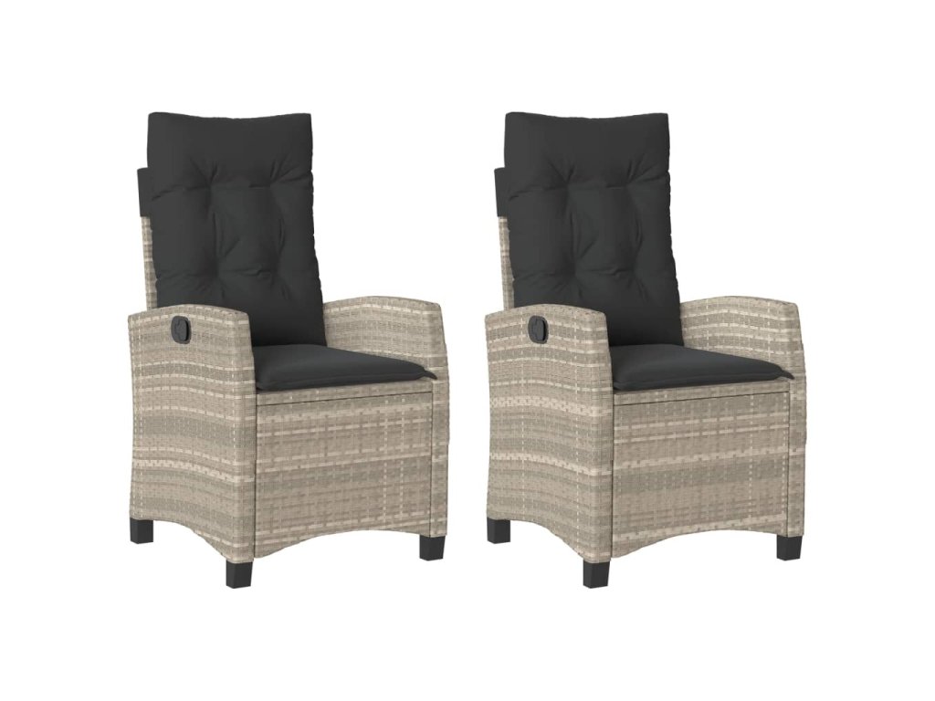 vidaXL Sklápacie záhradné kreslá 2 ks s podložkami bledosivé polyratan