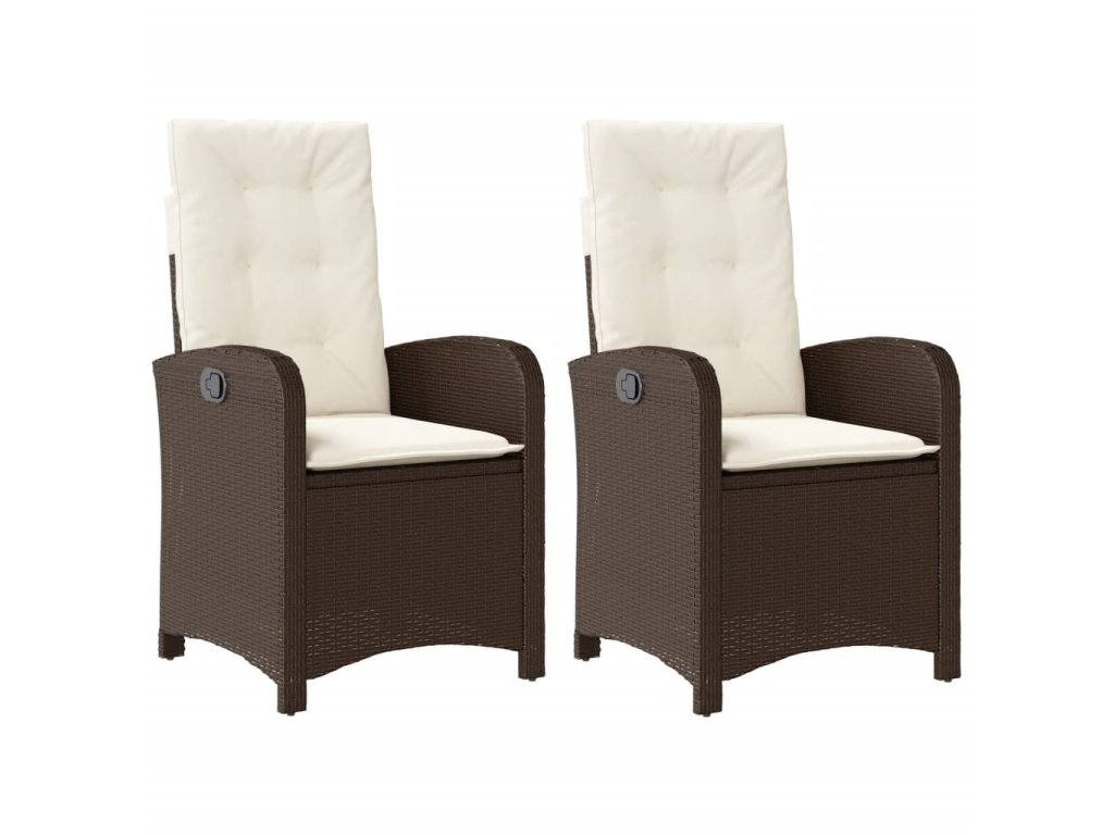 vidaXL Sklápacie záhradné kreslá 2 ks s podložkami hnedé polyratan