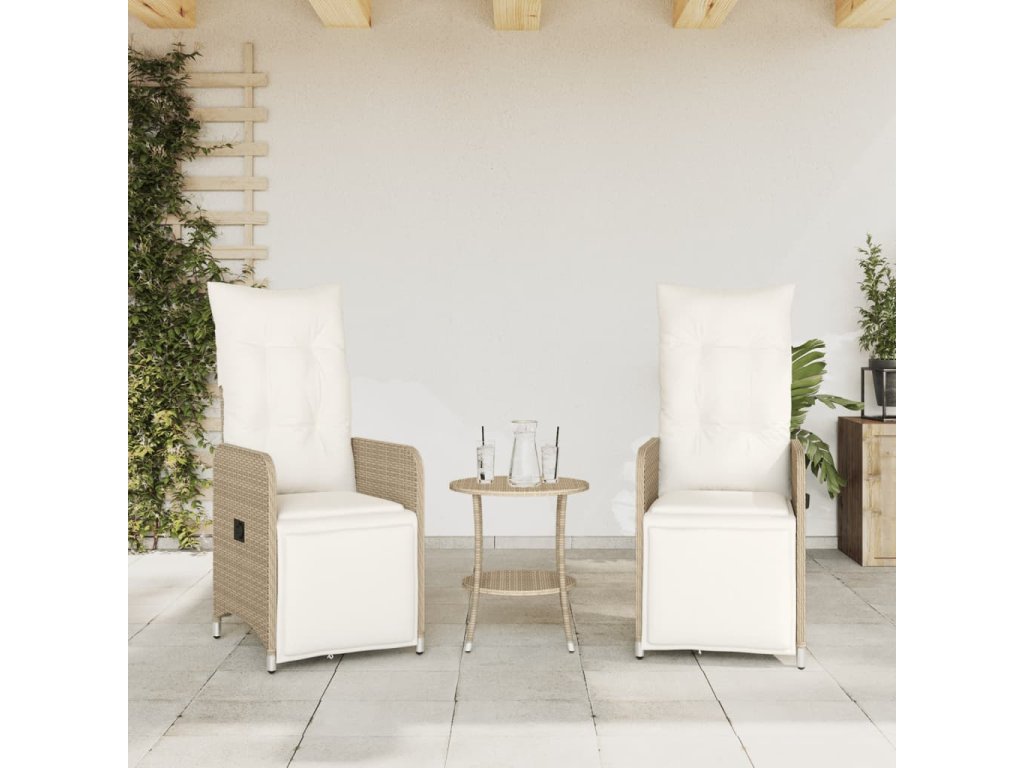 vidaXL Sklápacie záhradné kreslá 2 ks s stolom béžové polyratan