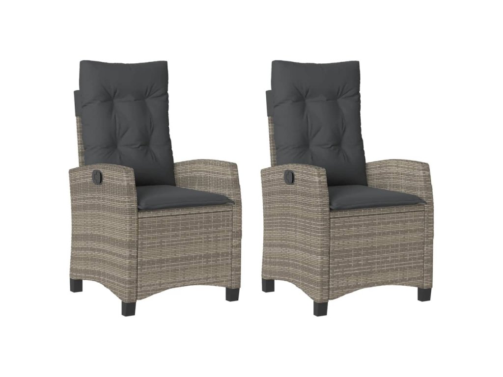 vidaXL Sklápacie záhradné kreslá 2 ks s vankúšmi sivé polyratanové