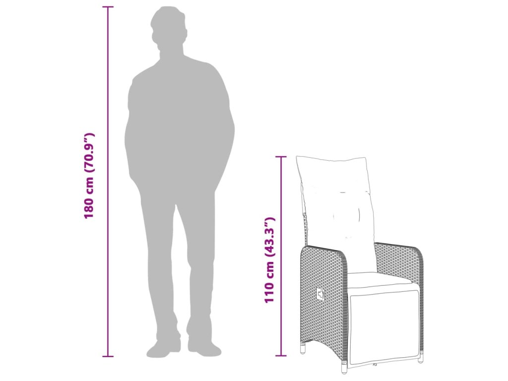 - Nastaviteľné operadlo a podnožka: Toto záhradné sedadlo má rukoväť. Opierku chrbta a podnožku môžete nastaviť do ľubovoľnej polohy zatiahnutím za rukoväť a rýchlo ich vrátiť do pôvodnej polohy.