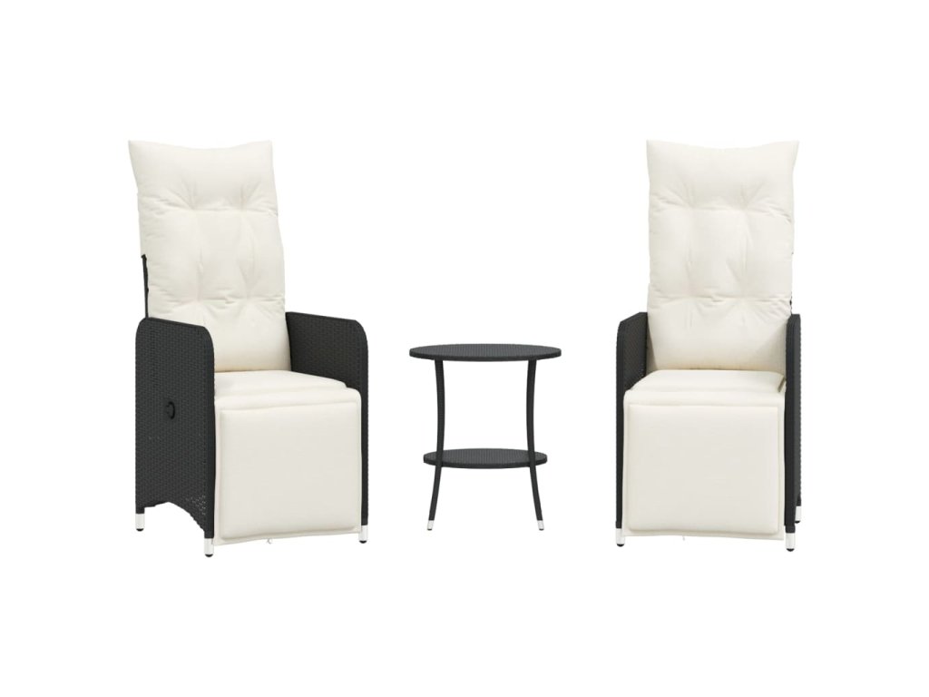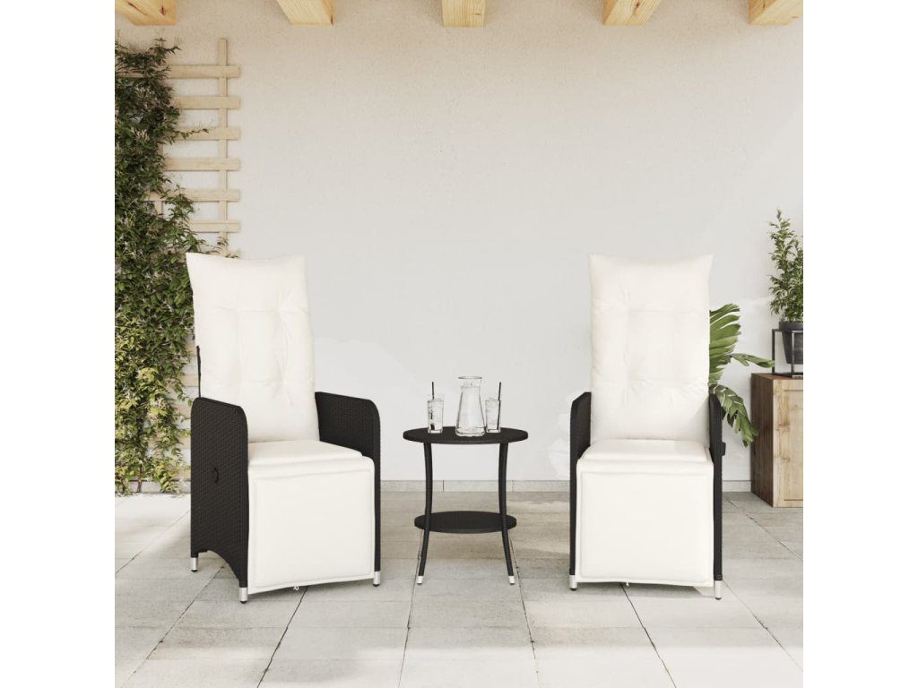 vidaXL Sklápacie záhradné kreslá 2 ks so stolíkom, čierne, polyratan