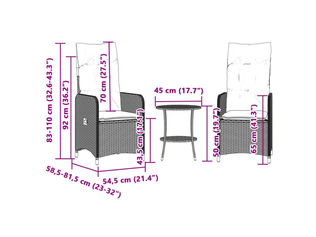 - Rozmery v polohe na ležanie: 54,5 x 81,5 x 83 cm (Š x H x V)