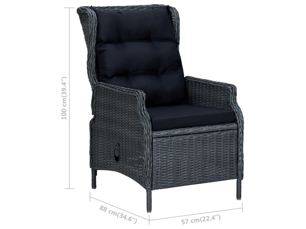 vidaXL Sklápacie záhradné kreslo s podložkami, polyratan, tmavosivé