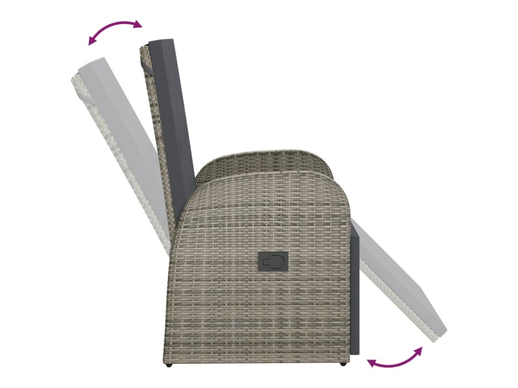 vidaXL Sklápacie záhradné kreslo s vankúšmi sivé polyratanové