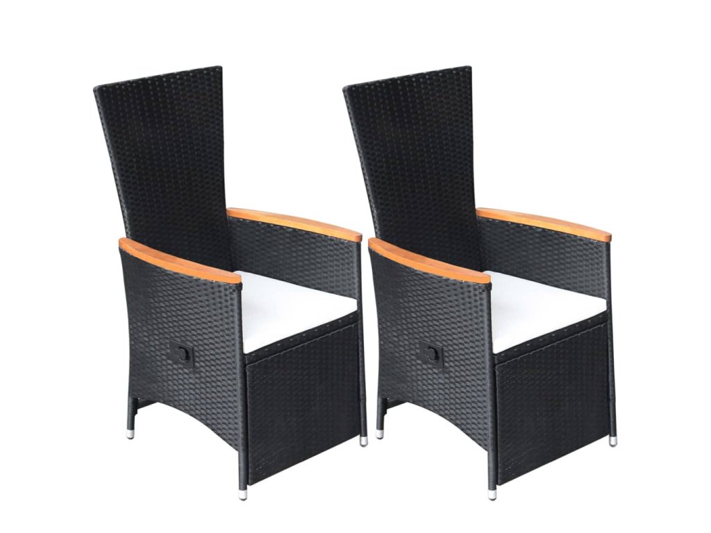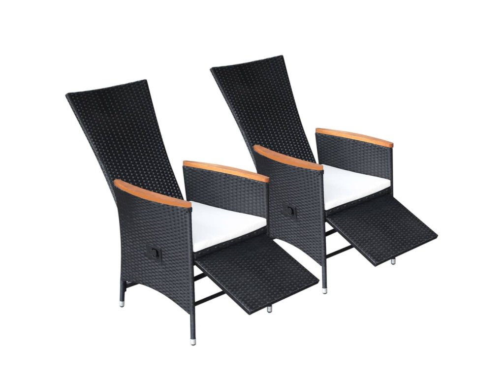 vidaXL Sklápacie záhradné stoličky 2 ks s podložkami, polyratan, čierne