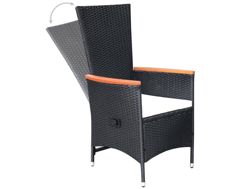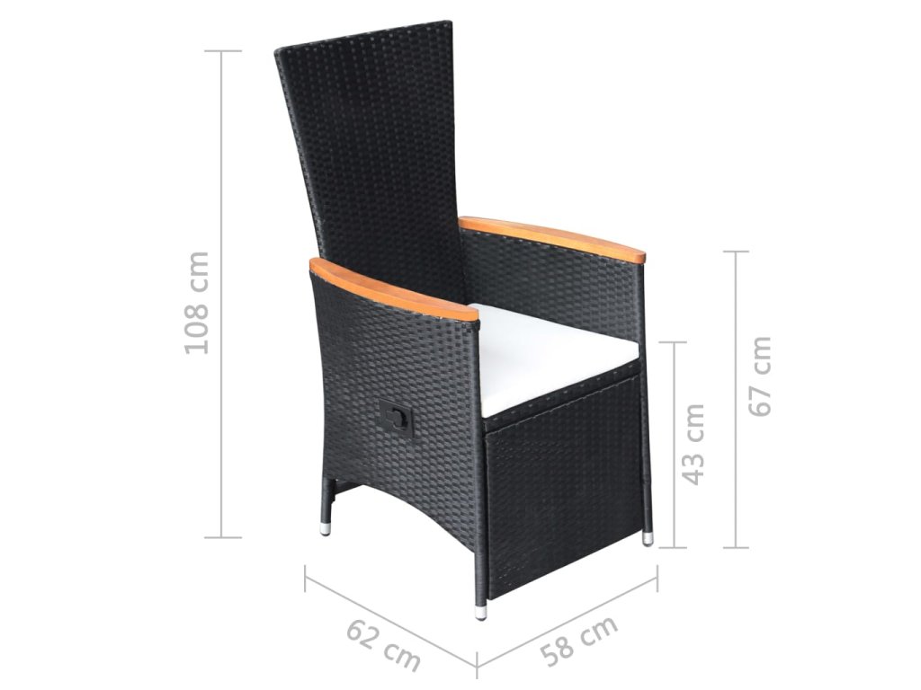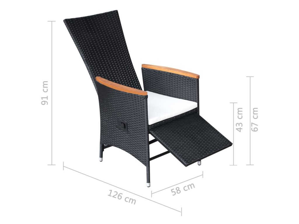 Tieto jedálenské stoličky sú vyrobené z PE ratanu, ktorý je vodovzdorný a odolný voči poveternostným vplyvom, a preto sa ľahko čistia, sú odolné a vhodné na každodenné používanie. Vďaka oceľovému rámu s práškovou povrchovou úpravou sú stoličky veľmi pevné a trvácne. Opierky na ruky sú vyrobené z akáciového dreva, tvrdého tropického dreva, ktoré je odolné voči poveternostným vplyvom. Stačí stlačiť tlačidlo na boku a operadlo sa sklopí a zároveň sa vysunie opierka na nohy pre väčšie pohodlie pri ležaní. Stoličky majú ľahkú konštrukciu, a preto sa dajú jednoducho premiestniť. Hrubé a mäkké podložky na sedadlo vyplnené molitanom sú veľmi pohodlné a vyrobené z vodovzdorného polyesteru. Poťahy na zips sa dajú jednoducho zvliecť a oprať.