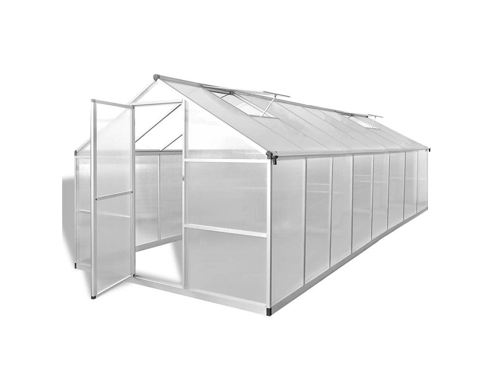 Skleník má pevnú hliníkovú konštrukciu, ktorá si nevyžaduje žiadnu údržbu a ktorá mu dodáva lepšiu stabilitu. Odkvapový systém efektívne odvádza vodu a dva strešné vetracie otvory zabezpečujú optimálnu ventiláciu počas horúcich dní. Strešné okno má dizajn s posuvnou funkciou, ktorá umožňuje jednoduchú inštaláciu. Vďaka tomu je skleník pevnejší v porovnaní so skleníkmi so svorkami. Na posúvacie okno nie je potrebná žiadna základňa. Montáž jednoducho zvládnete pomocou potrebného montážneho príslušenstva, ktoré je súčasťou balenia.