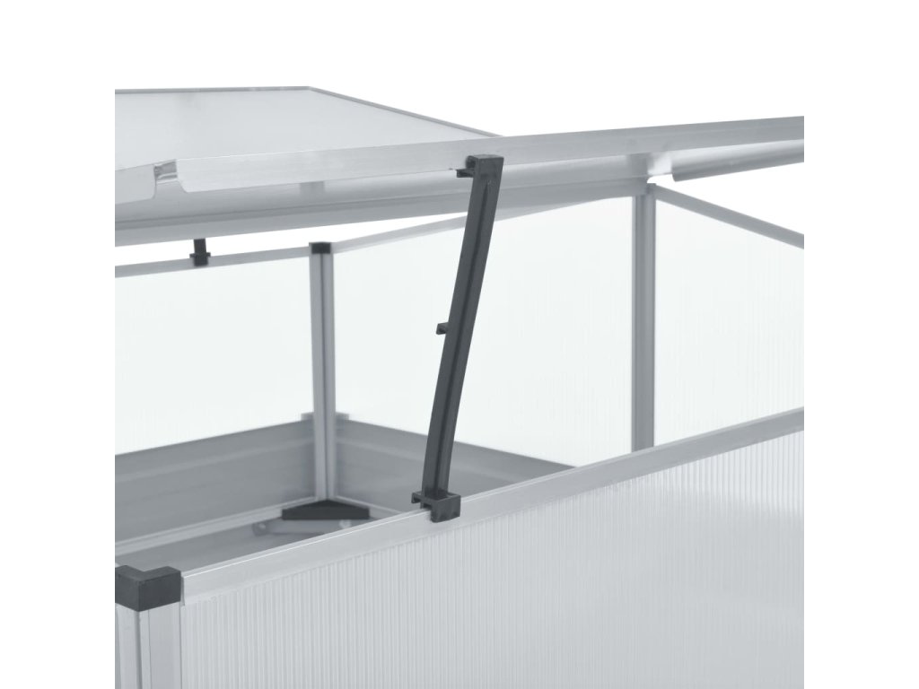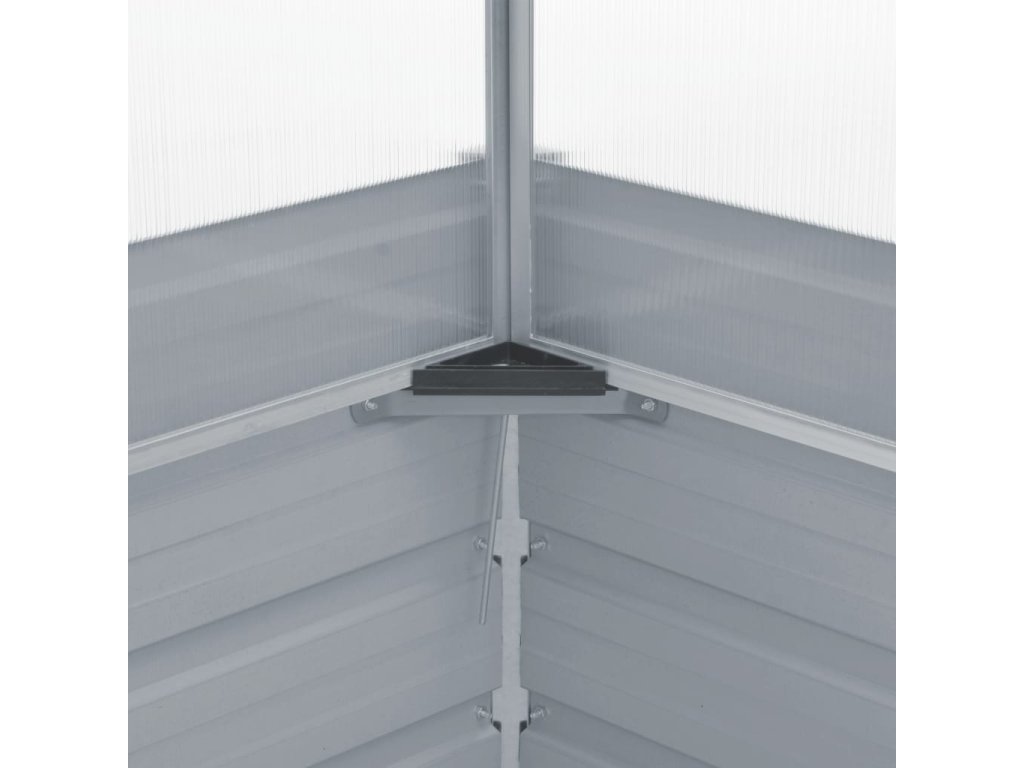 Tento záhradný skleník je vyrobený z PC dosky a pozinkovanej ocele, takže je mimoriadne trvácny a kvalitne vyhotovený. Je dostatočne hlboký a široký, a tak sa doň zmestí veľké množstvo pôdy a poskytuje dostatok priestoru pre vaše rastliny, zeleninu, bylinky a kvety. Vďaka jednoduchému štvorcovému dizajnu predstavuje štýlový doplnok na balkón či na terasu. Rám základne má celistvé okraje, takže sa na ňom nenachádzajú žiadne nebezpečné ostré hrany. Výrobok sa jednoducho montuje. Upozorňujeme, že strecha tohto skleníka neudrží ťažkú snehovú pokrývku.