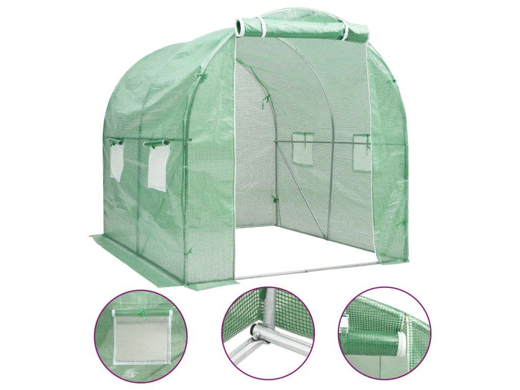 Tento skleník predstavuje skvelý spôsob, ako ochrániť rastliny pred vetrom, dažďom, slnkom či pred vtákmi. Skleník je vyrobený z PE sieťoviny s hustotou 140 g/m², ktorá je o 25 % ťažšia než bežné sieťoviny od iných výrobcov. Vďaka tomu dokáže ešte lepšie minimalizovať nepriaznivé vplyvy vonkajšieho prostredia. Fóliovník má pevný pozinkovaný oceľový rám, ktorý je odolný voči hrdzi a ktorý prináša mimoriadnu stabilitu. Skleník vetracie okienka s rozmermi 38x38 cm a jedny dvere s rozmermi 100x185 cm.