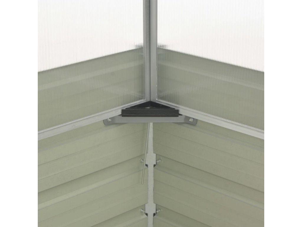Tento záhradný skleník je vyrobený z PC dosky a pozinkovanej ocele, takže je mimoriadne trvácny a kvalitne vyhotovený. Je dostatočne hlboký a široký, a tak sa doň zmestí veľké množstvo pôdy a poskytuje dostatok priestoru pre vaše rastliny, zeleninu, bylinky a kvety. Vďaka jednoduchému štvorcovému dizajnu predstavuje štýlový doplnok na balkón či na terasu. Rám základne má celistvé okraje, takže sa na ňom nenachádzajú žiadne nebezpečné ostré hrany. Výrobok sa jednoducho montuje. Upozorňujeme, že strecha tohto skleníka neudrží ťažkú snehovú pokrývku.