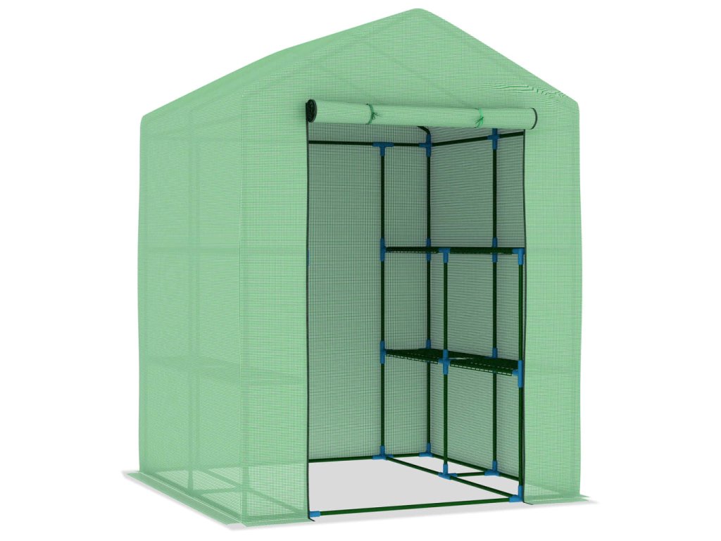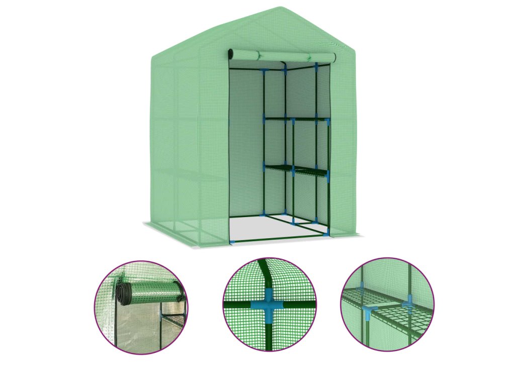 Tento skleník predstavuje skvelý spôsob ako ochrániť vaše rastliny pred vetrom, dažďom, silným slnkom či pred vtákmi a inými škodcami. Skleník je vyrobený z PE sieťoviny s hustotou 170 g/m², ktorá je o 25% ťažšia než bežné sieťoviny od iných výrobcov a vďaka tomu dokáže ešte lepšie minimalizovať nepriaznivé vplyvy prostredia. Fóliovník má pevný oceľový rám s práškovou povrchovou úpravou, ktorý je odolný voči hrdzi a ktorý prináša mimoriadnu stabilitu. Skleník má poličky, na ktoré si môžete poukladať rôzne rastliny a dvierka, ktoré umožňujú dobré vetranie a jednoduchý prístup dovnútra.