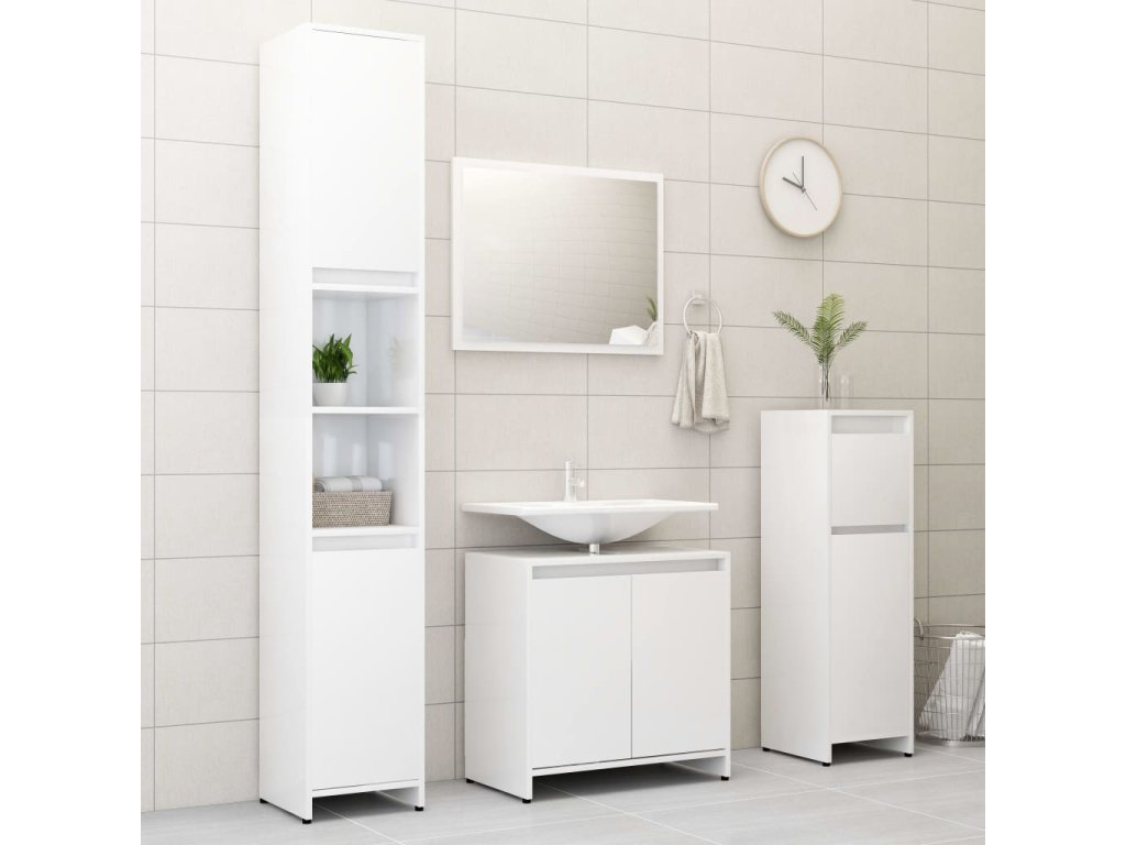 vidaXL Skrinka do kúpeľne, lesklá biela 60x33x61 cm, kompozitné drevo