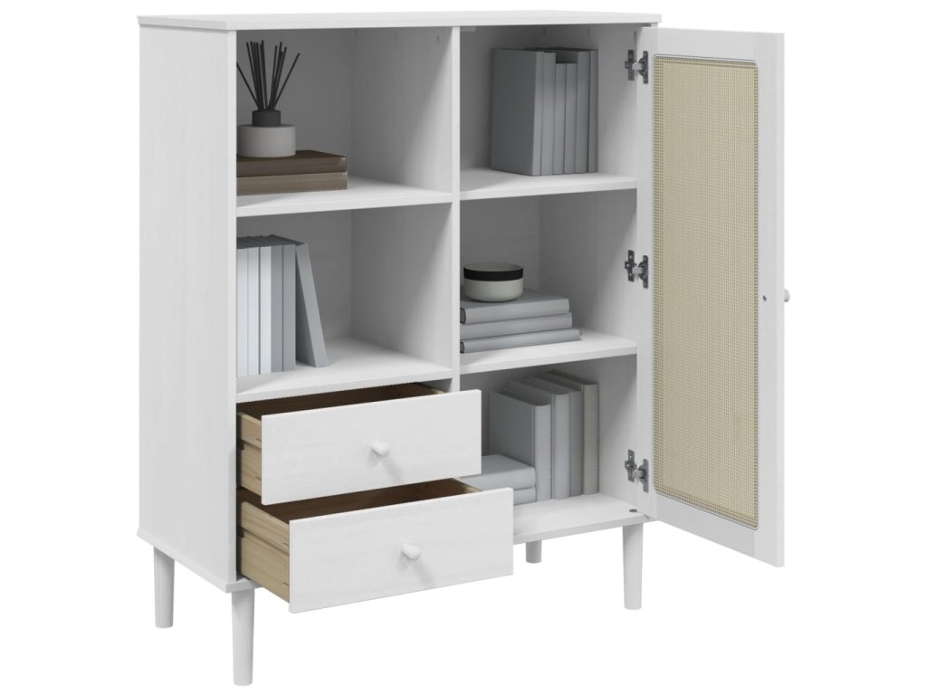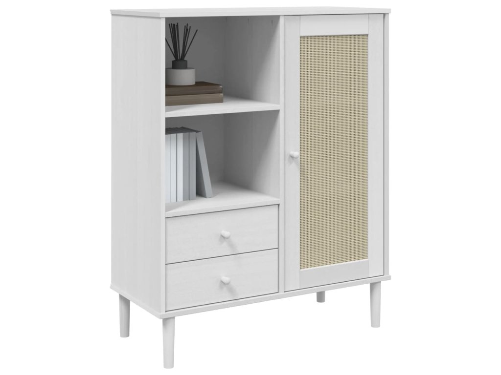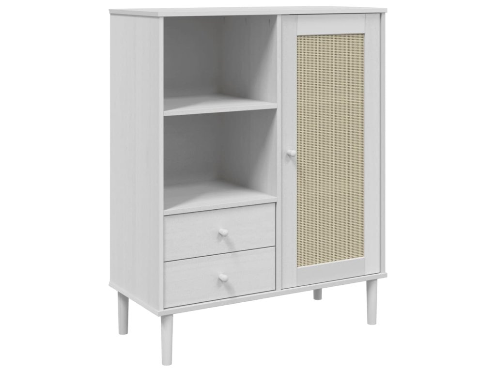 vidaXL Skrinka SENJA, ratanový vzhľad, biela 90x40x112 cm, borovica