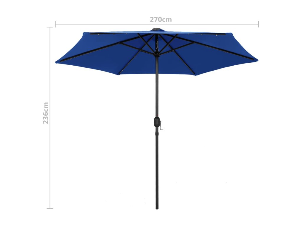 vidaXL Slnečník s LED a hliníkovou tyčou 270 cm, azúrovo modrý