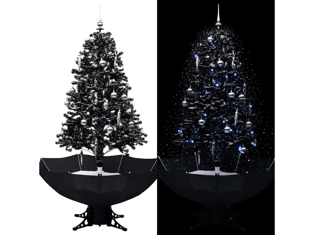 vidaXL Snežiaci vianočný stromček s dáždnikovým podstavcom čierny 170 cm PVC