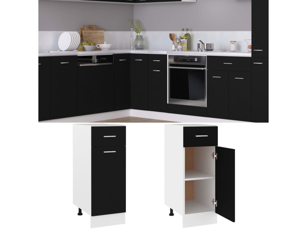 vidaXL Spodná skrinka+zásuvka, čierna 30x46x81,5 cm, kompozitné drevo
