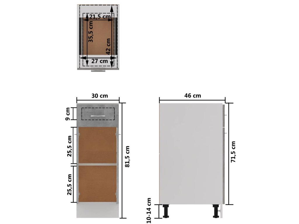 vidaXL Spodná skrinka+zásuvka “Lyon”, betónová 30x46x81,5cm