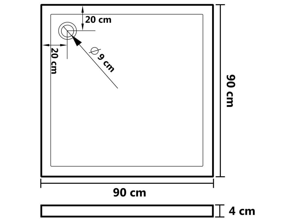 - Celkové rozmery: 90 x 90 x 4 cm (D x Š x V)